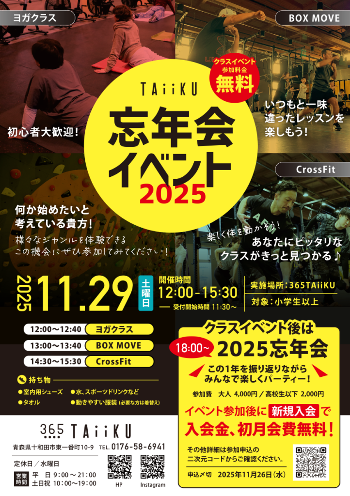 【クラスイベント参加料金】 無料【2025忘年会 参加料金】大人 4,000円 / 高校生以下 2,000円