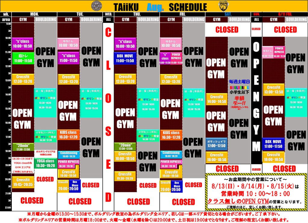 8月スケジュール